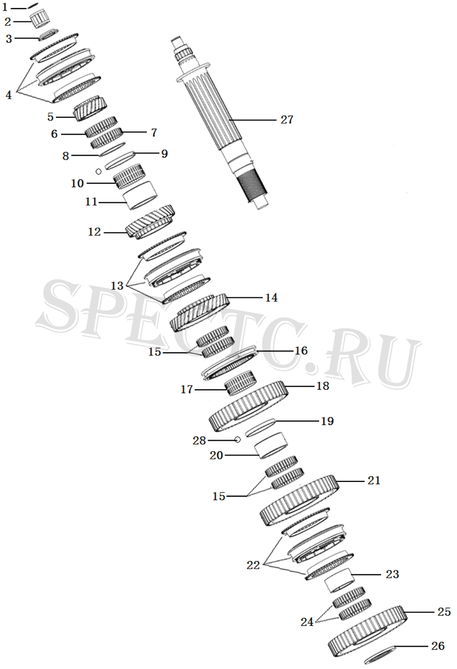 | 4 | J70-1701030-4 | Вал первичный | 1 |