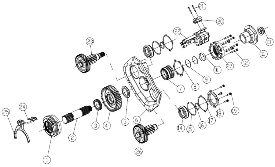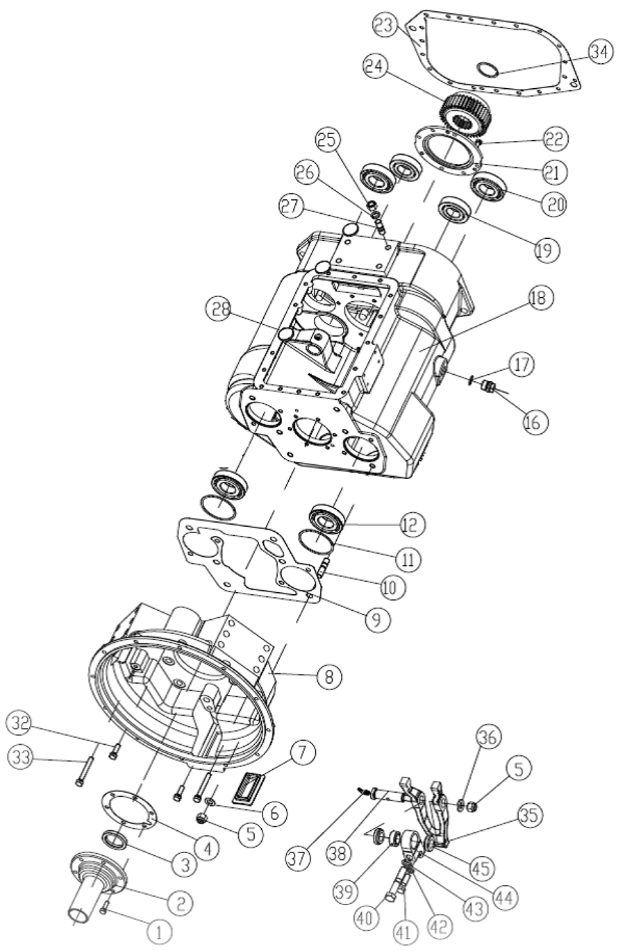 Тип коробки передач | Полностью синхронизированная механическая 16-ступенчатая с двумя промежуточными валами алюминиевый корпус |